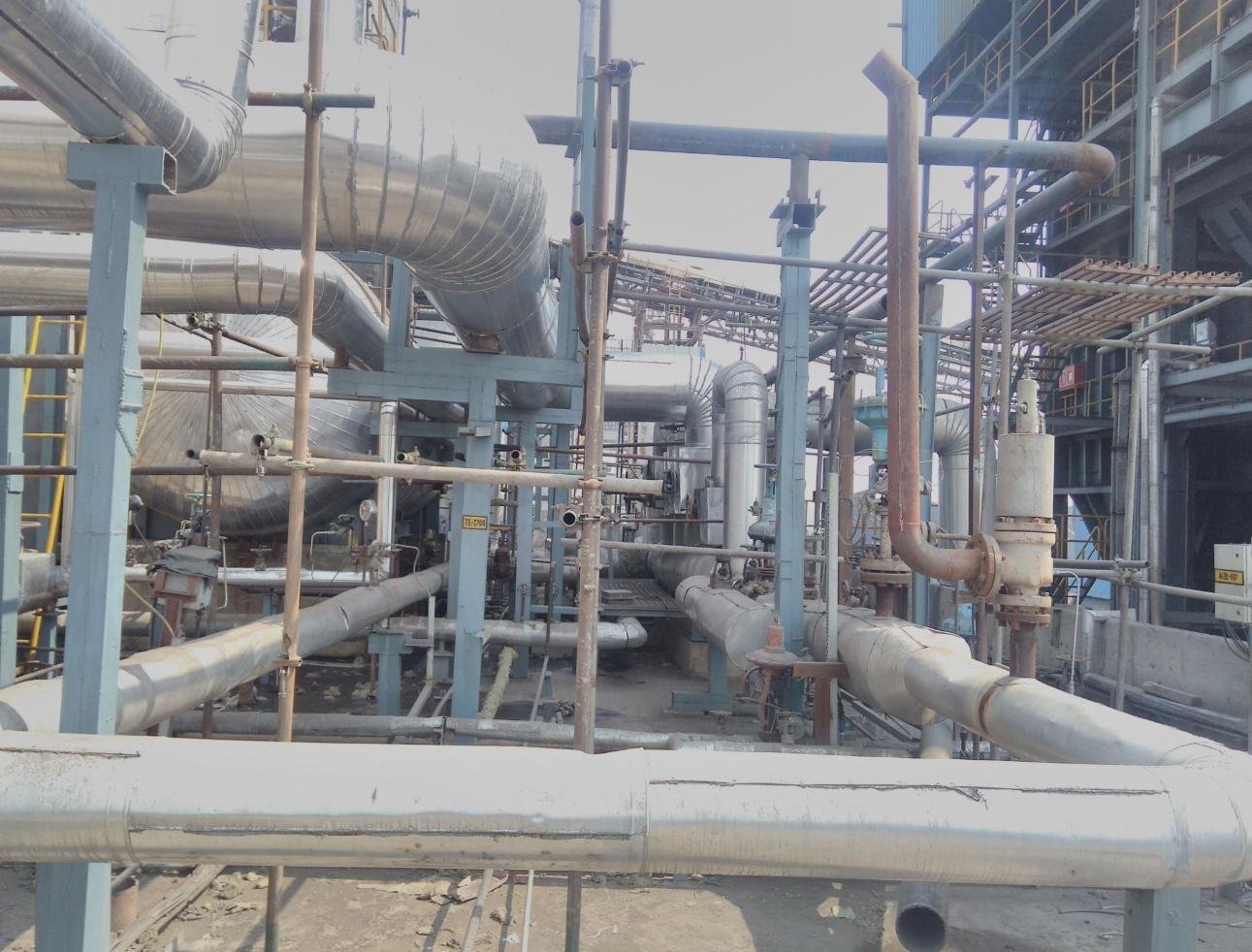 The photographs illustrate a complex and high capacity steam distribution network within an operating industrial facility. Purna has executed the detailed engineering, pipe routing, structural integration and field fit coordination for this system, ensuring seamless steam flow from the turbine and process boilers to various consumers across the plant.